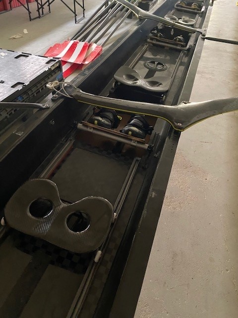 Dieses Boot ist mit der besten Ausstattung (Olympiaausführung, Carbon-Schachbrettdeck, runde Carbon-Deckkante, Carbon-Rollsitze, neuwertige Schuhe) ausgerüstet
