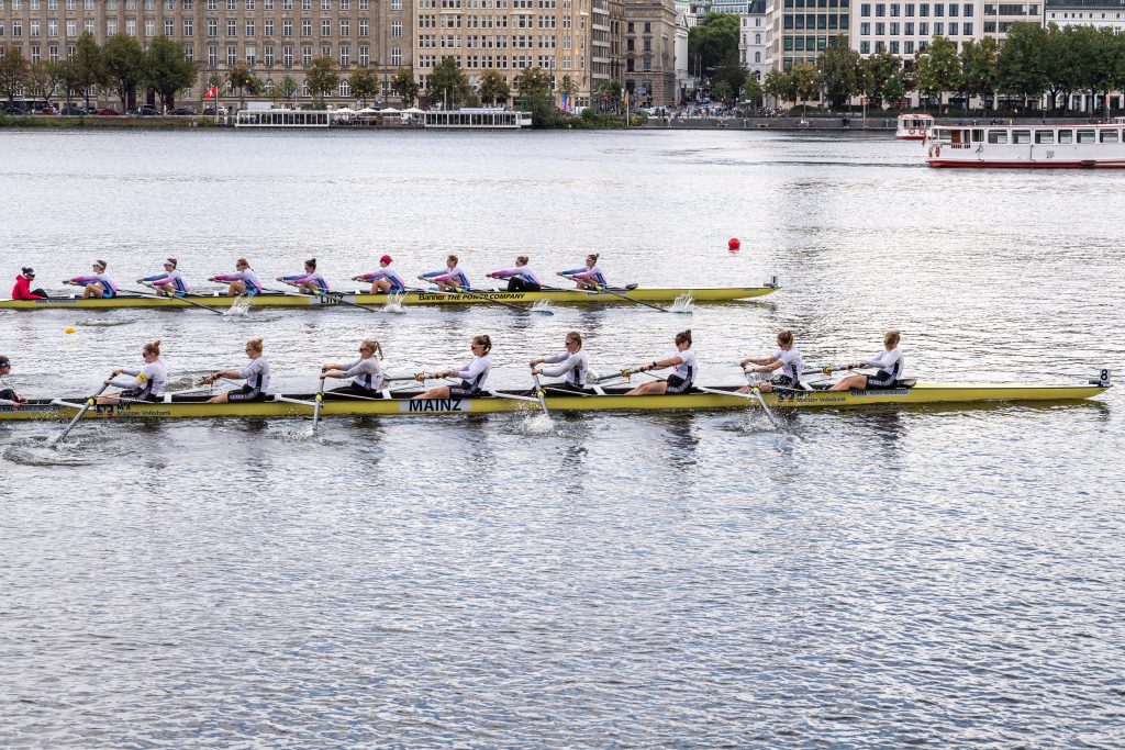 Hamburg, 17.9. 2022. Der Banner WIKING Linz-Achter holte am 5. und letzten Renntag der Deutschen Ruder-Bundesliga in Hamburg auf der Binnen-Alster BRONZE. Mit der beeindruckenden Serie von 5 Stockerlplätzen, zwei davon ganz oben, beschließen die Damen die Ruder-Bundesliga 2022 auf Platz 3!
